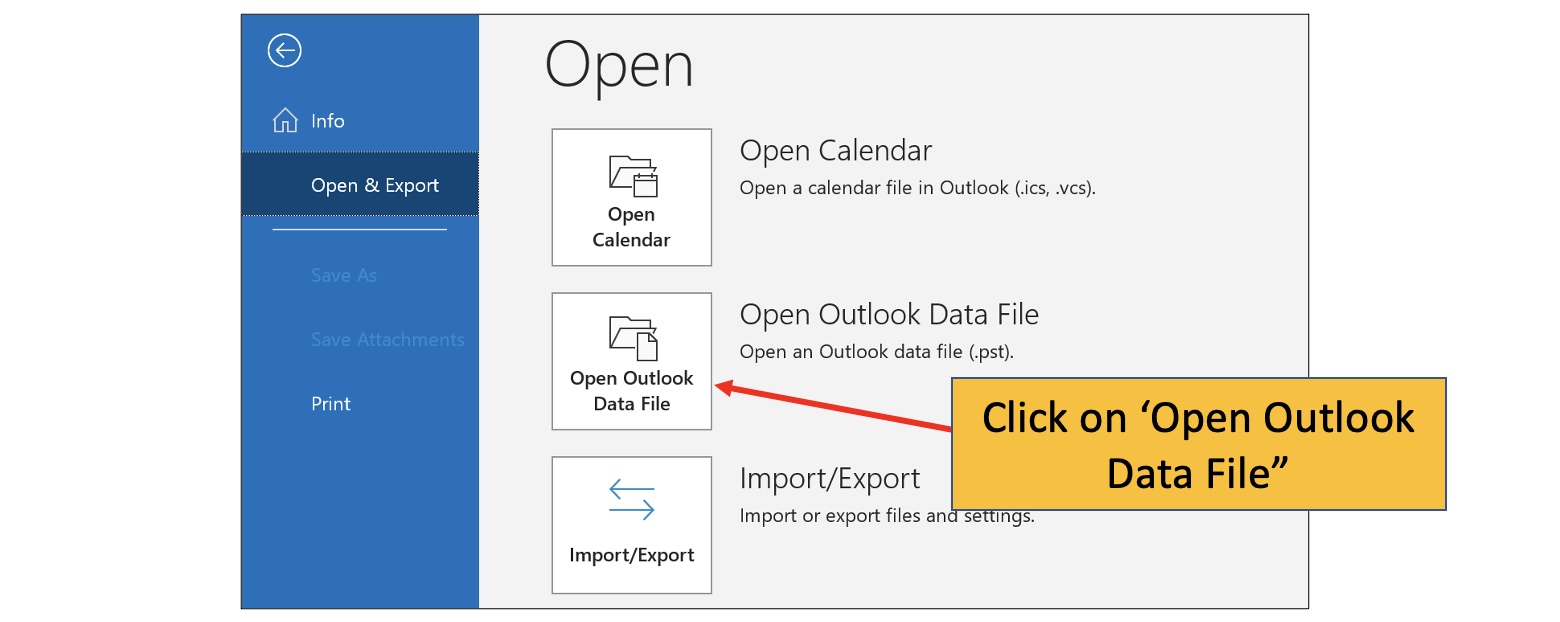 3. Click on “Open Outlook Data File”: